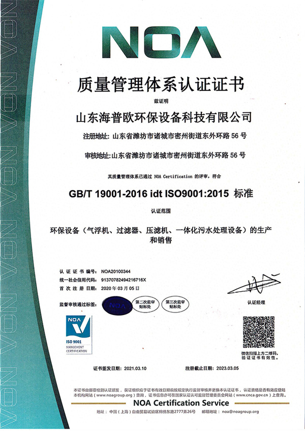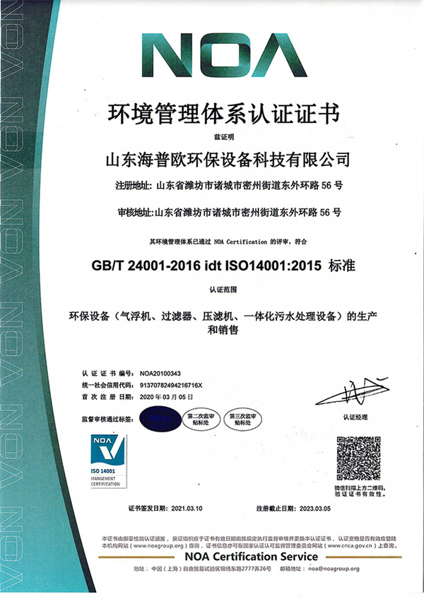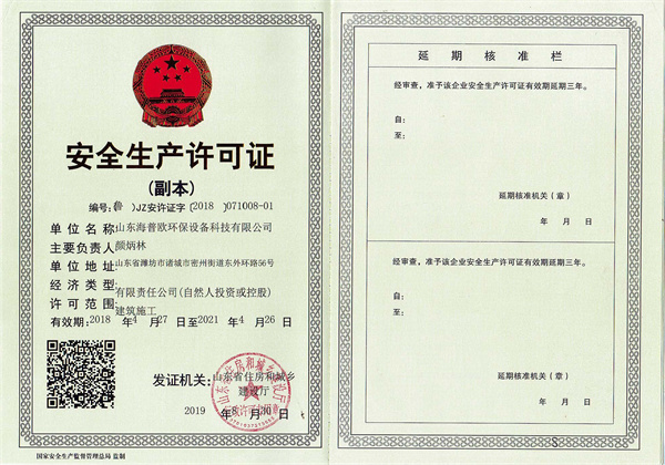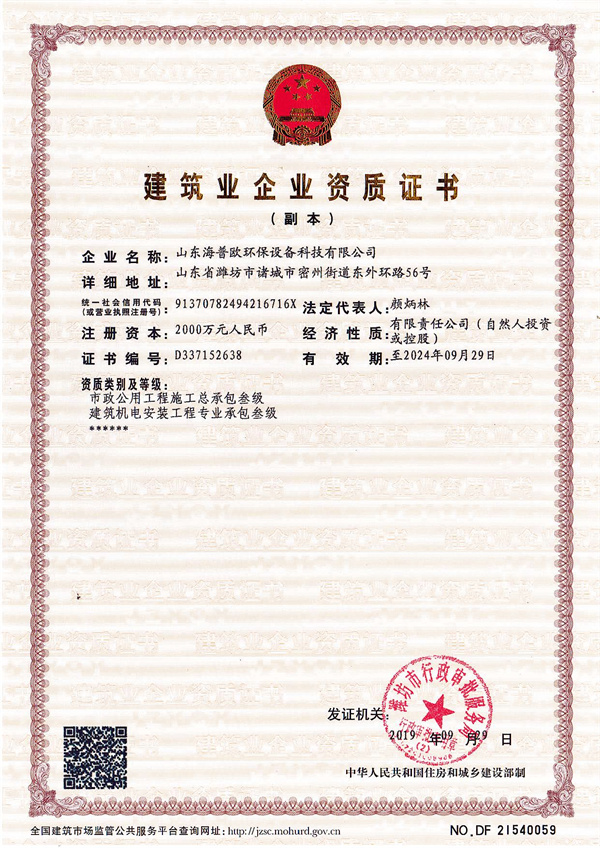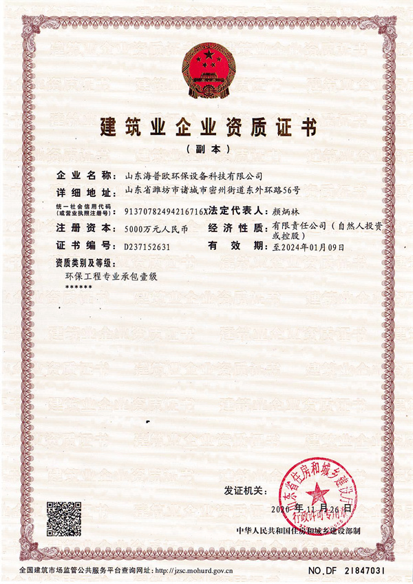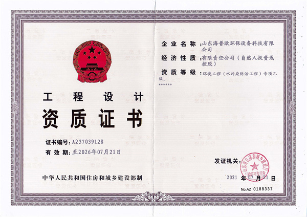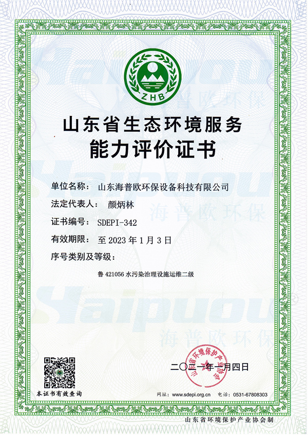 水污染治理設施運維二級資質(zhì)證書