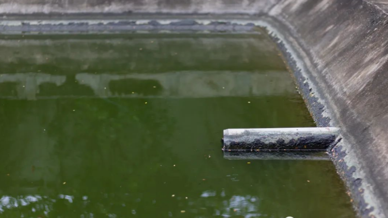 沉淀后的清水被抽出,準備進行進一步的處理或者排放。