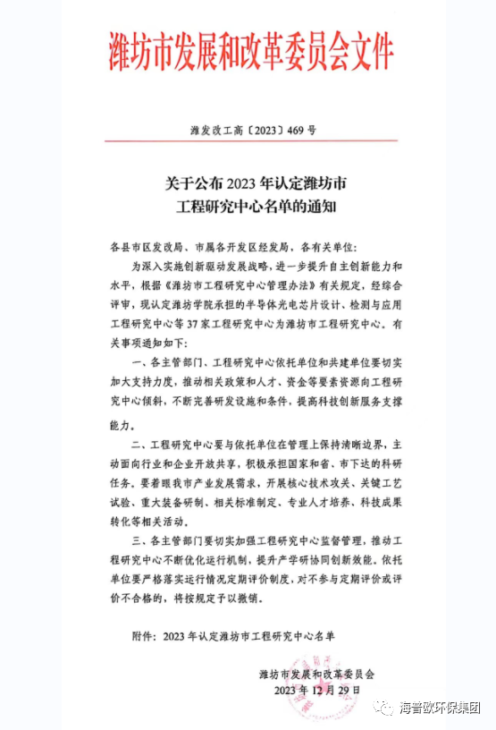 這次認定不僅是對海普歐環(huán)保集團技術(shù)實力的肯定,也是濰坊市工程研究中心對數(shù)字化污水處理領(lǐng)域的關(guān)注與支持。