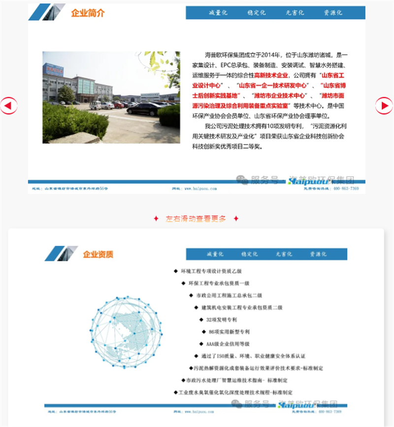 海普歐環(huán)保集團是國家高新技術(shù)企業(yè)、國家級專精特新“小巨人”企業(yè)、工信部環(huán)保裝備制造行業(yè)規(guī)范條件企業(yè)、山東省專精特新企業(yè)、山東省制造業(yè)單項冠軍企業(yè)、山東省“瞪羚企業(yè)”、山東省兩化融合優(yōu)秀企業(yè)、山東省技術(shù)創(chuàng)新示范單位、山東省環(huán)境保護產(chǎn)業(yè)“骨干企業(yè)”、山東省DCMM貫標(biāo)試點單位、服務(wù)型制造示范企業(yè)、“隱形冠軍”企業(yè),擁有山東省工業(yè)設(shè)計中心、山東省一企一技術(shù)研發(fā)中心、山東省博士后創(chuàng)新實踐基地、濰坊市企業(yè)技術(shù)中心、濰坊市面源污染治理及綜合利用裝備重點實驗室。公司擁有環(huán)境工程專項設(shè)計乙級資質(zhì),環(huán)保工程專業(yè)承包資質(zhì)一級、市政公用工程施工總承包二級、建筑機電安裝工程專業(yè)承包二級資質(zhì)、施工勞務(wù)不分等級資質(zhì)、安全生產(chǎn)許可證;同時取得了水污染治理設(shè)施運維能力評價二級;中華環(huán)保產(chǎn)業(yè)聯(lián)合會理事單位、山東省環(huán)保產(chǎn)業(yè)協(xié)會理事單位、濰坊市建筑專業(yè)承包企業(yè)信用評價等級AAA企業(yè)、天津大學(xué)環(huán)境學(xué)院生態(tài)環(huán)境校友會(第二屆)理事會執(zhí)行會長單位、寧夏山東企業(yè)商會執(zhí)行會長單位、諸城市環(huán)保產(chǎn)業(yè)聯(lián)盟理事單位;并通過了ISO9001質(zhì)量體系認(rèn)證、ISO14001環(huán)境管理體系認(rèn)證、ISO45001職業(yè)健康安全管理體系認(rèn)證;擁有發(fā)明型專利33項,實用性專利88項、計算機軟件著作權(quán)14項;注冊了“haipuou”品牌商標(biāo);公司榮獲“濰坊市科學(xué)技術(shù)獎”“山東省工信廳認(rèn)定數(shù)字經(jīng)濟晨星工廠”、“守合同重信用企業(yè)”、“AAA信用企業(yè)”、“中國優(yōu)秀環(huán)保企業(yè)”、“ 山東省環(huán)境保護產(chǎn)業(yè)環(huán)境技術(shù)進步獎”、“山東省企業(yè)技術(shù)創(chuàng)新促進會技術(shù)創(chuàng)新獎”等多項榮譽;我公司專利產(chǎn)品-基于5G應(yīng)用的云控制和云檢測數(shù)字化污水處理設(shè)備被認(rèn)定為“山東省知名品牌(產(chǎn)品)”、“山東制造·齊魯精品”榮譽。