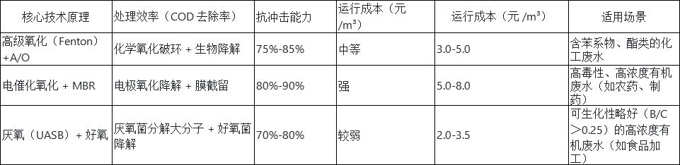 選型建議:高毒性廢水優(yōu)先選電催化氧化 + MBR 工藝;中等難度廢水選 Fenton+A/O 工藝;可生化性較好的高濃度廢水選 UASB + 好氧工藝,降低成本。