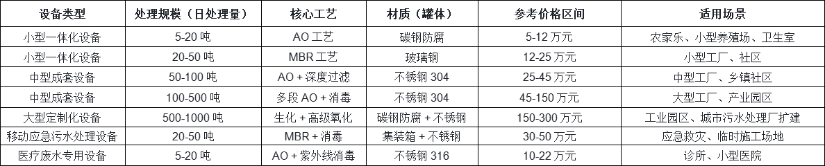 二、2025 年污水處理設(shè)備最新價格參考范圍