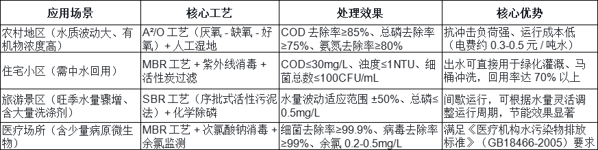 根據(jù)不同場(chǎng)景的水質(zhì)特點(diǎn)與排放要求,生活污水處理一體化設(shè)備的工藝已形成 “分級(jí)定制” 體系,具體如下: