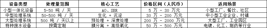 二、廢水處理設(shè)備價格參考范圍