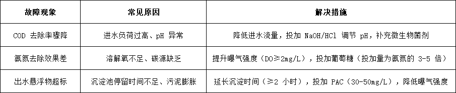 •日常監(jiān)控:A/O 池 pH 控制在 7.0-8.0,MLSS 維持在 3000-5000mg/L,每周檢測 SV30(控制在 15%-30%),超標及時排泥。