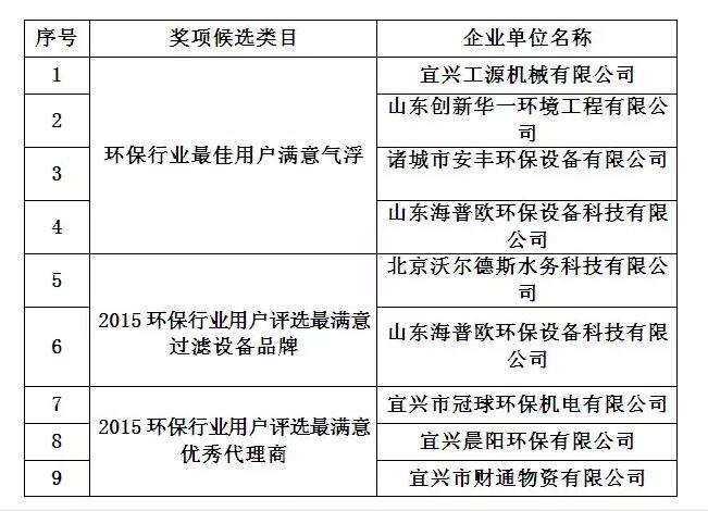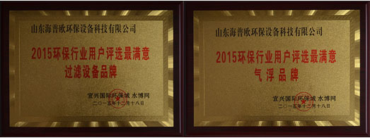 山東海普歐環(huán)保設(shè)備科技有限公司是中國(guó)環(huán)保產(chǎn)業(yè)協(xié)會(huì)會(huì)員單位,專業(yè)從事環(huán)保產(chǎn)品及技術(shù)開發(fā),電力工程設(shè)計(jì),環(huán)保工程、環(huán)保設(shè)施營(yíng)運(yùn)及技術(shù)服務(wù)等業(yè)務(wù)。受主辦方邀請(qǐng)參與了此次評(píng)選活動(dòng),憑借良好的市場(chǎng)信譽(yù)和客戶的高度好評(píng),及在行業(yè)內(nèi)的影響力,拿下2015環(huán)保行業(yè)用戶評(píng)選最滿意氣浮品牌和2015環(huán)保行業(yè)用戶評(píng)選最滿意過濾設(shè)備品牌兩項(xiàng)大獎(jiǎng),可謂實(shí)至名歸。