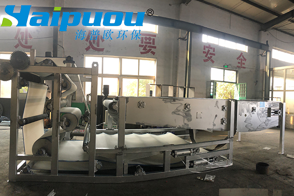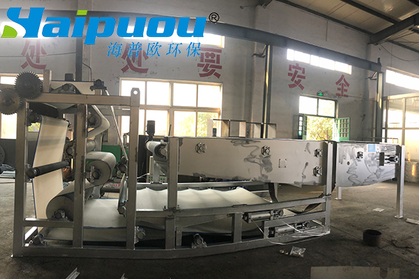 2、重力脫水段長,第一與第二重力脫水段總長5m多,使污泥在壓榨前充分脫水失去流動(dòng)性。同時(shí),重力脫水段還設(shè)置反轉(zhuǎn)等特殊機(jī)構(gòu),經(jīng)“楔”形、“S”形壓榨等作用使污泥濾餅獲得低的含水量。