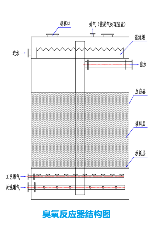 臭氧催化氧化工藝作為污水深度處理工藝中的一種新工藝,因其氧化性強、反應(yīng)速度快、投資低、效果好、運行成本低、無二次污染等優(yōu)點而受到廣泛關(guān)注。臭氧催化氧化工藝能有效去除水中的色度、氣味、鐵、錳等無機物質(zhì),顯著降低污水COD、TOC、紫外線吸收值等污染物指標(biāo)主要用于二次出水、市政污水、焦化廢水、印染、垃圾滲濾液、制藥、化工等廢水處理。